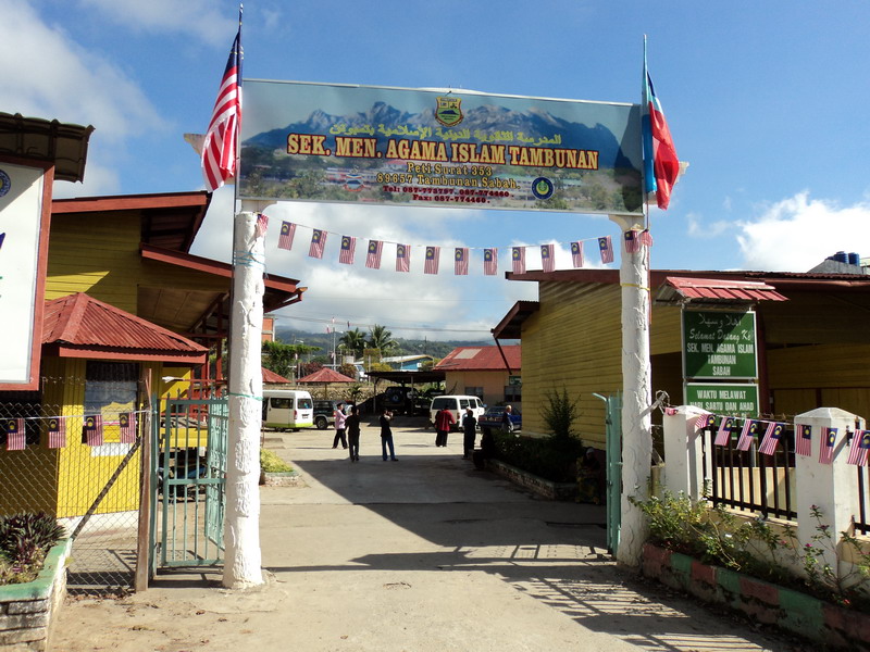Setelah berdiskusi kita melanjutkan perjalanan ke Sekolah Ugama Islam Sabah, Pekan Tambunan. Sekolah ini memiliki jenjang pedidikan dari SD hingga SMA, yang membuat saya senang adalah kedisiplinan dan tata tetib sekolah yang sangat bernuansa Islami, pengurusnya seorang ustadzah yang juga mualaf mengenal Islam dan di Islamkan oleh Ustadz Hadiq. Beliau bercerita tentang kondisi sosial masyarakat dan kondisi ekonomi para guru yang sangat pas pasan, dengan berurai air mata dia bercerita bagaimana guru – guru disini berjuang menyisihkan sebagian pendapatannya untuk membelikan perlengkapan sekolah kepada anak – anak muridnya yang memang umumnya terdiri dari anak – anak yang kurang mampu dan bahkan sebagian dari orang tua mereka melepas anak – anak nya untuk diserahkan sepenuhnya kepada pihak sekolah, tanpa memberikan apapun kepada pihak sekolah.