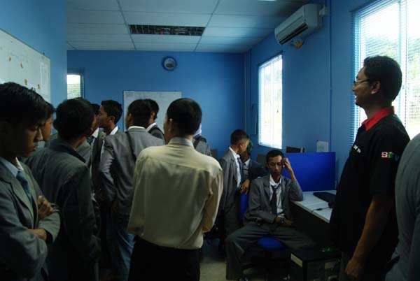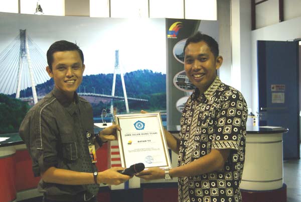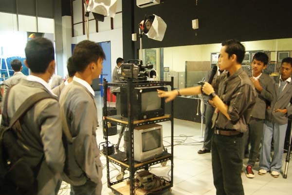 setelah jam sekolah usai anak – anak segera bersiap untuk berangkat ke STV, perjalanan dari Hang Tuah ke STV menghabiskan waktu kira kira 40 menit, dengan semangat yang mengebu gebu di dalam mobil merekapun tidak sabaran untuk segera sampai ke STV. setelah sampai di STV kami pun di sambut oleh Pimpinan Redaksi STV Bang Rifai Razake. beliau memberikan pengarahan dan informasi mengenai pemancar STV yang belum terjangkau di beberapa daerah di Kota Batam akibat dari ketinggian tower STV yang hanya 100 meter sedangkan daerah yang belum dapat menerima siaran STV mungkin dikarenakan daerah yang rendah dan juga karena terhalang beberapa bukit2. setelah itu kamipun diajak berkeliling mulai dari Studio tempat biasa acara Talk Show, kebetulan juga sedang ada siaran berita langsung Bang Rifai menceritakan tentang teknik Chroma Key yaitu mengabungkan dua gambar secara bersamaan biasa digunakan oleh pembaca berita dan suasana latar belakang yang bisa dipilih sendiri teknik ini mengharuskan sebuah studio mempunyai lighting yang sangat baik agar objek foreground dan background bisa menyatu dengan sempurna, setelah itu kami masuk ke ruang on air dan melihat peralatan serta instalasinya, bang rifai juga menjelaskan bagaimana pembaca berita bisa kelihatan hapal sekali dengan naskah, dengan menggunakan teleprompter dan software nya maka hal tersebut bisa jadi sangat mudah sekali. kemudian masuk keruang editing disinilah tempat dimana bahan bahan mentah diolah sebelum disajikan kepada pemirsa, terlihat di ruangan ini jadwal dan target atau deadline sebuah pekerjaan harus diselesaikan. dan terakhir kami dibawa ke ruang redaksi dimana disinilah asal mula sebuah berita dari wartawan masuk dan kemudian direvisi oleh para redaktur, juga pengiriman berita berita wartawan dari daerah lain dengan menggunakan software TurboFTP baru kemudian dibawa keruang editing tadi untuk mempermanis tampian visual dan juga narasinya. setelah sesi keliling2 usai mulalah sesi tanya jawab yang tentu saja diselingi motivasi buat anak anak bahwa dunia broadcasting sangat luas dan masih terbuka lebar untuk mereka. itulah kunjungan studi ke dua Stasiun Televisi di Kota Batam sangat berguna buat menambah wawasan baru mengenai teknologi broadcasting anak SMK Islam Hang Tuah terimakasih buat BTV dan STV yang sudah memberikan waktu dan ilmu nya kepada anak anak kita.
